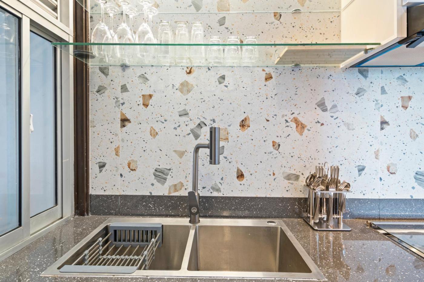 Three-Bedroom Apartment. Boasting a private entrance, this air-conditioned apartment features 1 living room, 3 separate bedrooms and 2 bathrooms with a bath or a shower and a bidet. The kitchen features a stovetop, a refrigerator and an oven. The spacious apartment features a flat-screen TV with satellite channels, a washing machine, Smartphone, a seating area as well as sea views. The unit has 3 beds.