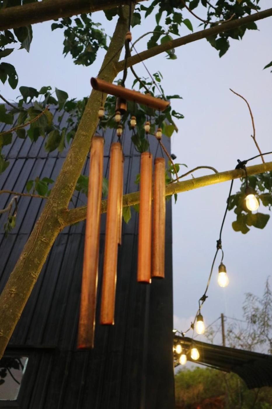 Guests can also warm themselves near outdoor fireplace after a day of hiking.